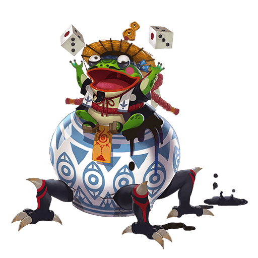 When Jikikaeru dies, he can move quickly and shakes his die for 4 seconds. He explodes when the die stops rolling, inflicting a 0.7-second #cae7409Stun on targets in range. At the same time, he summons 5 mahjong tiles, each dealing 120( +30*Current Level ) * (1.1 to 1.6) physical damage to nearby enemies.