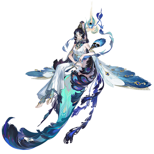 Mahamayuri waves her feather fan to perform a basic attack, dealing ( +102.5%Attack ) physical damage on the first hit, and ( +122.5%Attack ) physical damage on the second hit while generating a feather beside the target. The feather lasts for 7s.